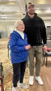 BRENTWOOD, TN – Dawson Knox, the Buffalo Bills’ star tight end, visited his grandparents on Tuesday – along with an enthusiastic crowd of their neighbors – at The Heritage at Brentwood.